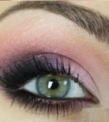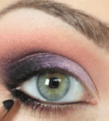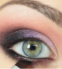 أمرغي بعدها بظلال العيون السوداء الزاوية على حدود الجفن المتحرّك حتّى خطّ الرموش، ثمّ طبّقي اللون البنفسجي في المنطقة الفاصلة بين اللونين الأسود والزهريّ كما في الصورة.
