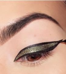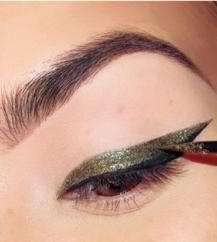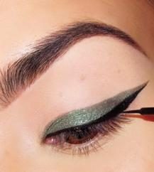 في هذه الخطوة، إستعيني بالأيلينر الأسود وارسمي خطاً رفيعاً فوق الجفن المتحرك أي فوق ظلال العيون باللون الزيتي إبتداءً من زاوية العين الداخلية حتى زاوية العين الخارجية تماماً كما في الصورة. إحرصي على أن يتصل هذا الخط بخط الأيلينر الذي رسمته سابقاً.