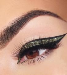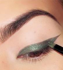 بعد ذلك، ضعي ظلال العيون بواسطة ريشة بللون الزيتي اللمّاع على الجفن المتحرك فوق الظلال باللون الأخصر.