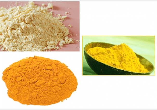 إخلطي ملعقتين من الطحين الأبيض مع كميّة صغيرة من الكركم، أضيفي الى هذا المزيج القليل من الحليب وإعجني الخليط لتحصلي على عجينة رقيقة، إذا كنتِ صاحبة بشرة دهنيّة، أضيفي الى هذا الخليط بضع النقاط من عصير الليمون. طبقي العجينة على وجهك وعنقكِ وإتركيها لمدّة 15 الى 20 دقيقة، عندما تشعرين بأنها جفّت إفركيها عن وجهكِ ثم إغسليه بالماء البارد!