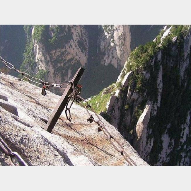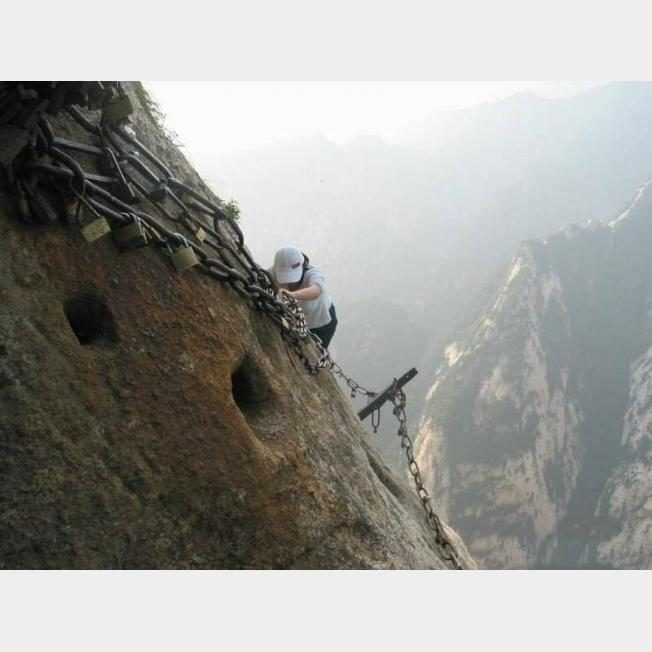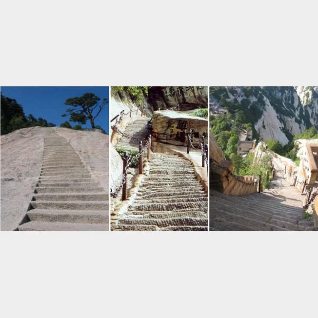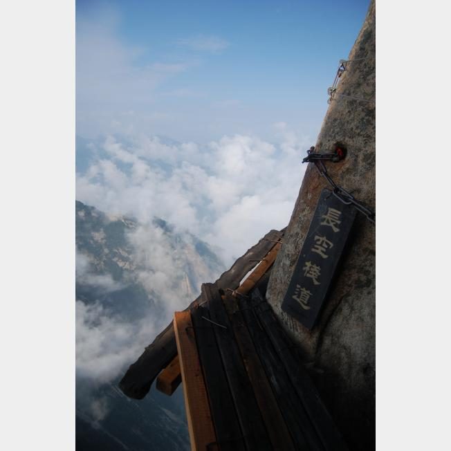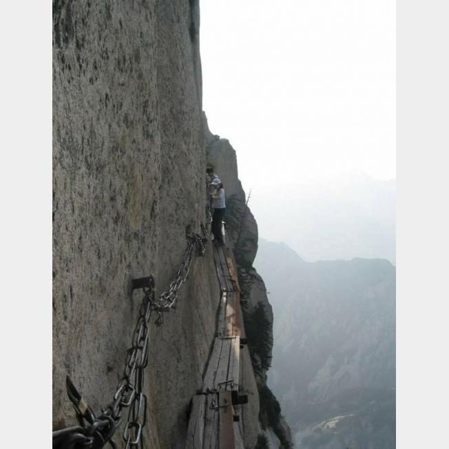 الخوف من المرتفعات لا يقف عائقاً أمام محبي التسلق ونشاطات المغامرة، أو حتى عشاق إكتشاف مناطق سياحية جديدة وفريدة من نوعها من حول العالم. وهذا بالتحديد ما يشهده ملايين السياح الذين يزورون أعلى قمة جبل Hua Shan في الصين عبر هذا الدرب الخطير الموجود في الصور أدناه، وذلك ليصلوا إلى مكان معزول عن العالم أشبه بالخيال!