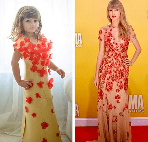 و في **فستان تايلور سويفت الوردي المصنوع من الورق**