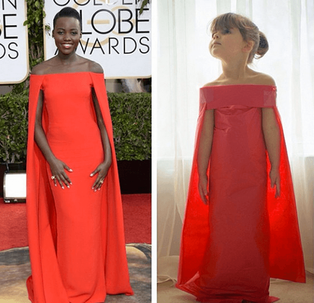 الطفلة مايهام ترتدي فستان لوبيتا نيونج الأحمر الذي سرق الأنظار على سجادة الغولدن غلوب